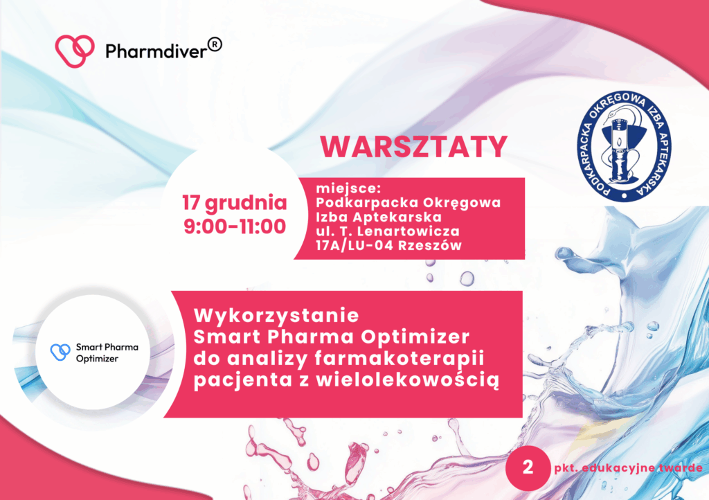 We współpracy z Podkarpacką Okręgową Izbą Aptekarską zapraszamy farmaceutów na wyjątkowe, stacjonarne warsztaty w Rzeszowie. To nasz sposób, aby w okresie przedświątecznym podziękować Państwu za zaangażowanie i codzienną troskę o bezpieczeństwo pacjentów.